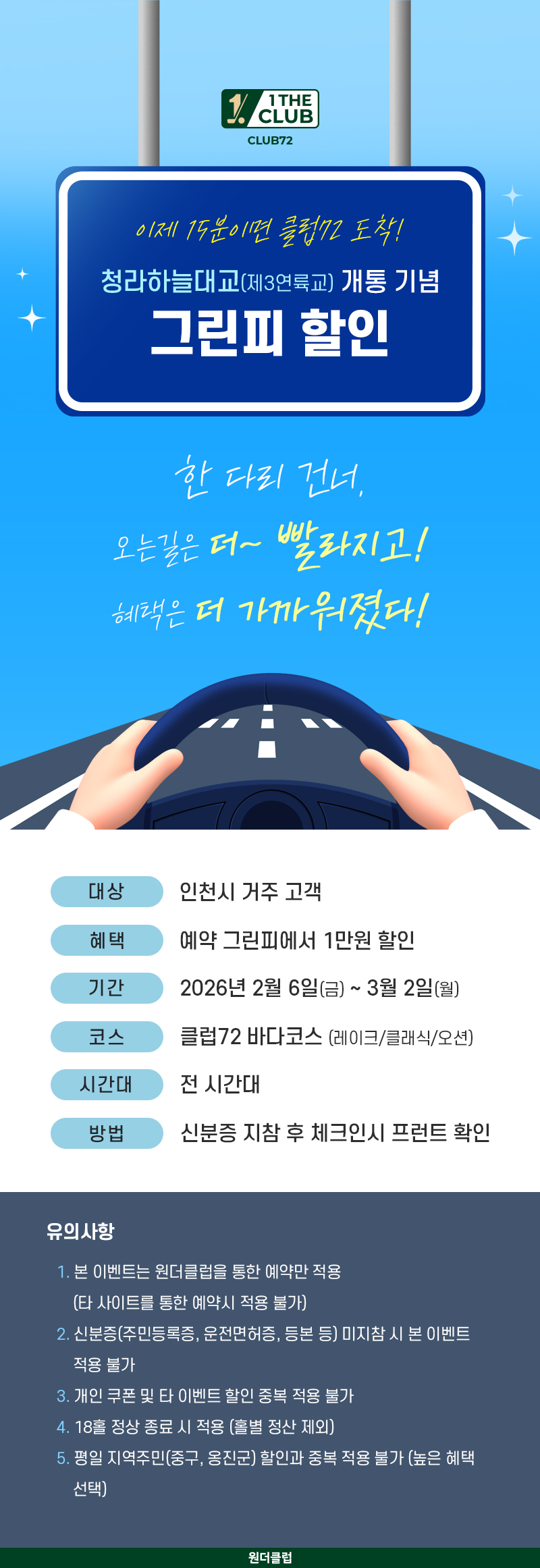 제목[클럽72] 바다코스, 인천 거주자 할인 이벤트 2026-01-26 01:01:40