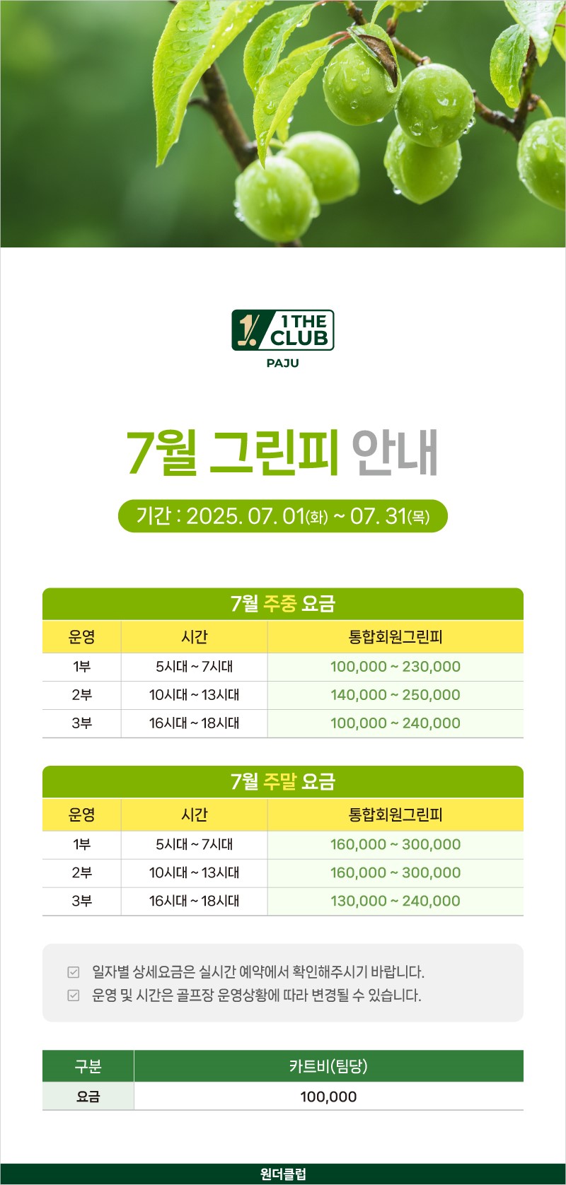 제목[파주CC] 7월 그린피 안내 2025-07-01 10:07:53