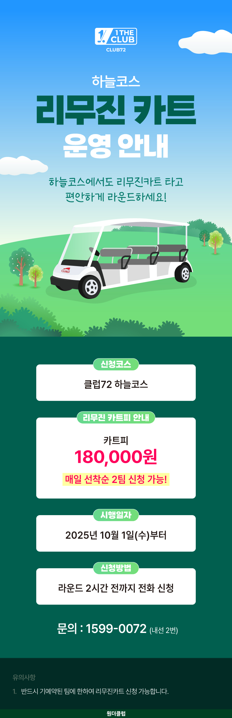 제목[클럽72] 하늘코스 리무진카트 운영 2025-09-29 04:09:14