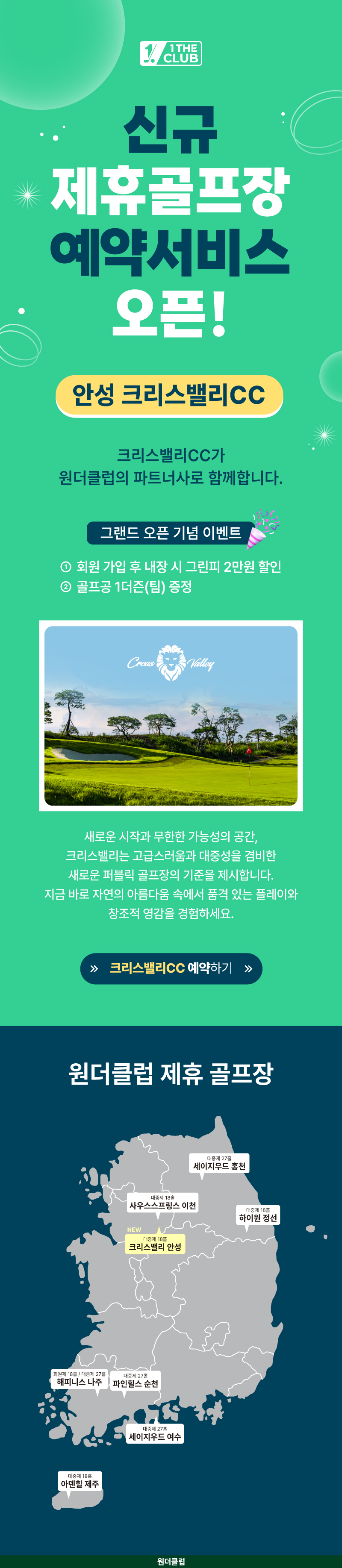 제목안성 크리스밸리CC 예약서비스 신규 오픈! 2025-09-26 11:09:29